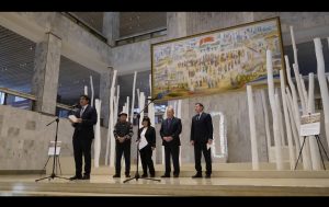 27 декабря в Национальном историческом музее Кыргызской Республики был представлен монументальный гобелен «Улут деми – Уңгужол». Произведение заняло почётное место на парадной лестнице музея, гармонично вписавшись в его архитектурное и художественное пространство и став важным символическим акцентом экспозиции.